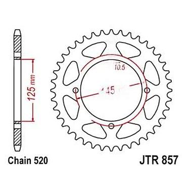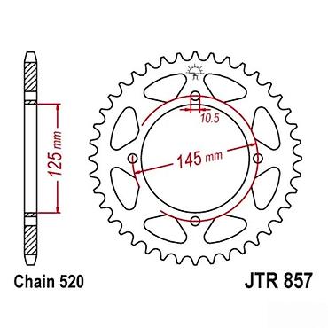 Pogodno kao zadnji lančanik u standardu JTR 857. Pre kupovine proveriti kompatibilnost sa modelom motocikla i postojeće dimenzije (BCD 145 mm, rupe 10,5 mm, lanac 520).
