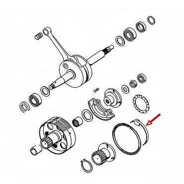 Zamašni prsten (starter bendix/klinasti prsten) za motocikl/scooter – deo kvačila/variomata prema šemi