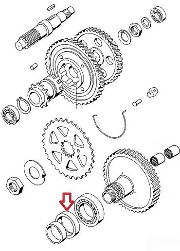 - Položaj u sklopu: između ležaja i čaure/distancera na osovini sekundarnog zupčanika (videti ilustraciju)