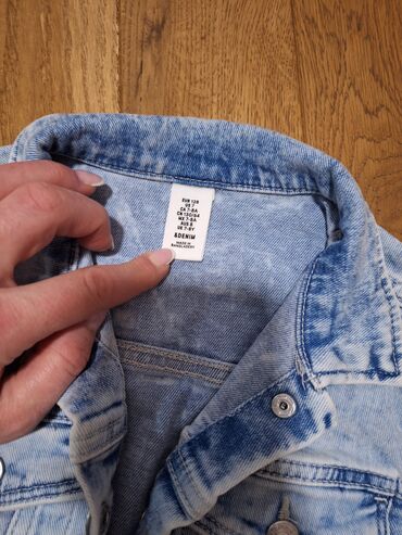 - Teksas jakna: svetlo ispran denim sa efektom „acid wash“. Klasičan kroj sa kragnom, prednjim kopčanjem na metalne dugmiće, dva gornja džepa sa preklopom i bočni džepovi. Manžetne na rukavima sa dugmetom. Veličina: EUR 128 (US 7/8, UK 7–8Y).