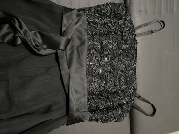 Klasičan crni model koji kombinuje saten i dekorativnu čipkastu teksturu sa šljokicama za sofisticiran, svečani izgled.