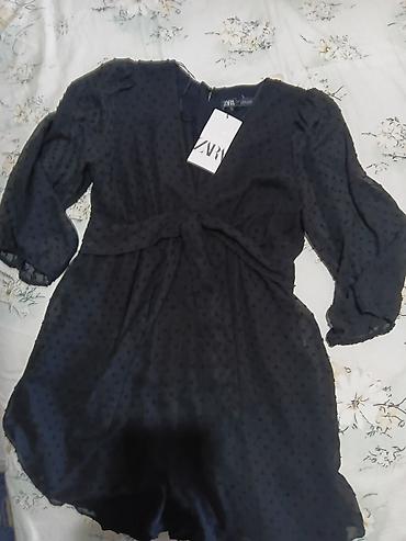 ZARA crna mini kombinezon sa teksturom (tačkasti/flokirani tufni) -