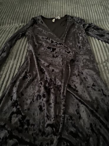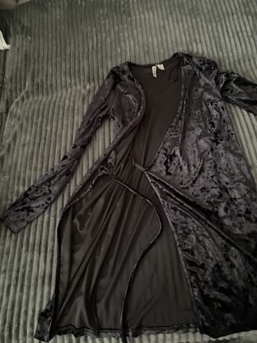 Elegantni komad koji se može nositi kao lagani prekrivač preko odeće ili kao haljina u preklopu za večernje prilike. Mek teksturiran somot daje suptilan sjaj i strukturu, dok V-izrez i vezivanje naglašavaju struk.