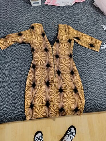 Zara haljina, strukirana i od struka se siri u polukrug, do kolena, prelepa. Vel S