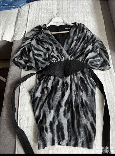 SvilaŽenska mini haljina sa animal printom (sive i crne nijanse) i širokim crnim pojasevima.