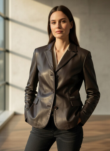 Ženska jakna sa etno/boho vezom - Bež osnovna boja sa tamnim (crnim) centralnim panelom i rubovima - Dekorativan ručni stil veza: grane sa listovima i cvetovima, aplikacije sa ornamentima - Podesi...