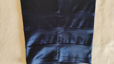 Deblja teget postavljena suknja - Veličina: 36 - Dužina: 54 cm - Poluobim struka: 37 cm - Materijal: deblja tkanina sa postavom - Kroj: ravna/pencil silueta do kolena - Detalji: zadnji šlic za lak...