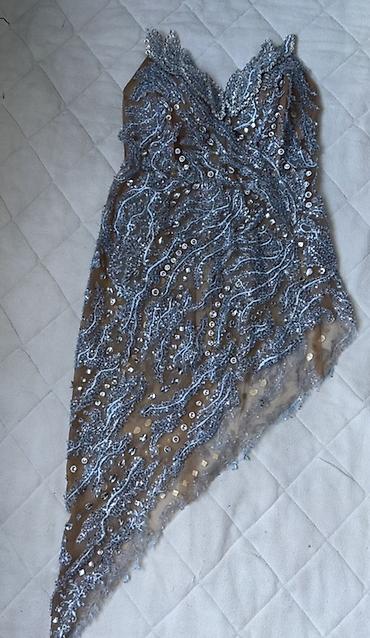 Ženska svečana haljina – asimetrični mini model Prodajem prelepu haljinu, jednom nošenu, u odličnom stanju. Materijal prijatan i lagan, lepo stoji uz telo. Veličina odgovara S/M. Idealna za mature...