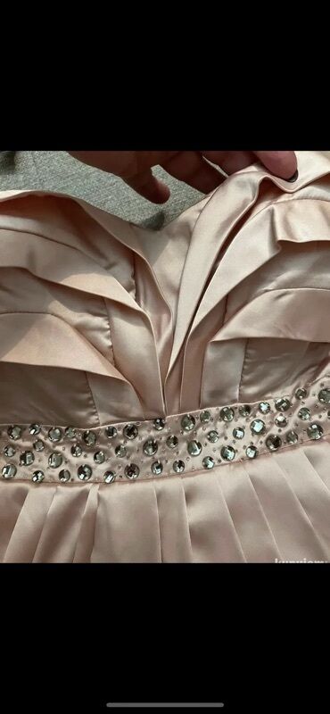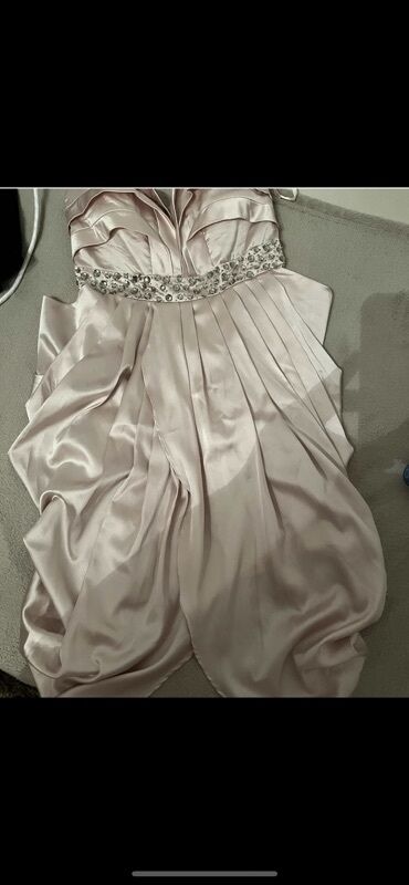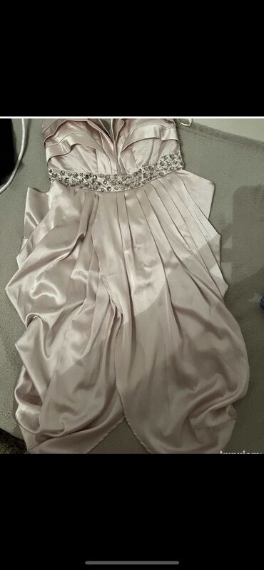 Drugi materijalSvečana haljina bez bretela u nežno opuder‑roze boji.