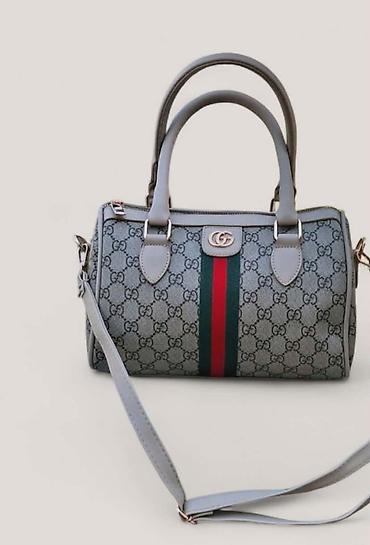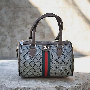 Ženska torba – monogram platno sa karakterističnom GG šarom i centralnom prugom u zeleno-crvenoj kombinaciji. Model u obliku “bowling/doctor” torbe.