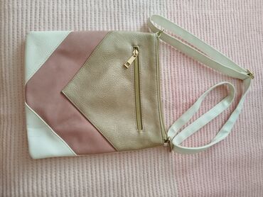 - Dimenzije (procena sa fotografije): oko formata manje torbe/tašne, pogodna za telefon, novčanik, ključeve i sitnice