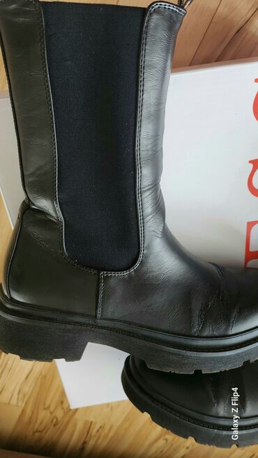 - Model: visoki Chelsea/ankle boots, zaobljena kapa, diskretni dekorativni šavovi na ristu