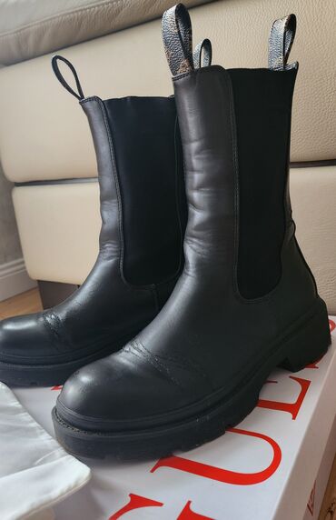 GuessGuess Kožne ženske čizme – crne, Chelsea stil, br 38