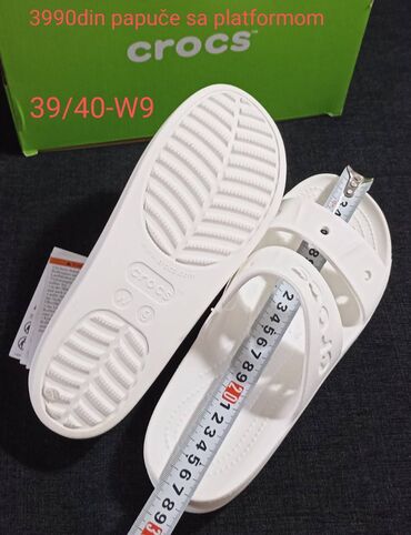 Na fotografiji je istaknuta cena: 3990 din. Papuče sa platformom, veličina 39/40 – W9.
