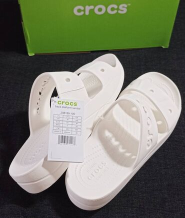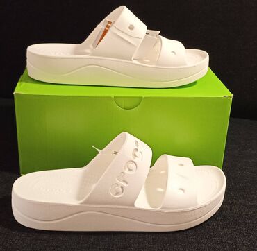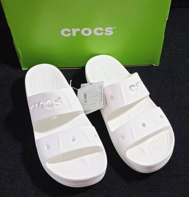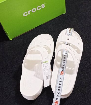 - Dizajn: dva široka kaiša sa reljefnim Crocs logotipom; otvorene rupe na gornjištu