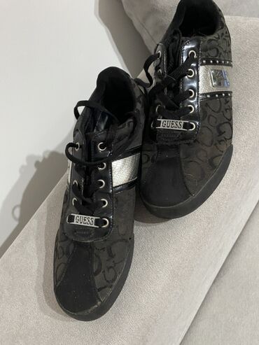 - Metalne pločice i detalji sa GUESS logotipom na jeziku i bočnim stranama