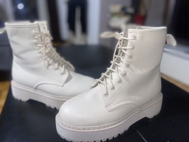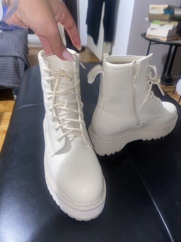Ženske krem bele čizme sa platformom - Model: gležnjače sa debljim đonom i grubim šarama (trakaste šare za dobro prijanjanje). - Materijal: mekana eko-koža sa blago mat završnicom. - Zatvaranje: ...