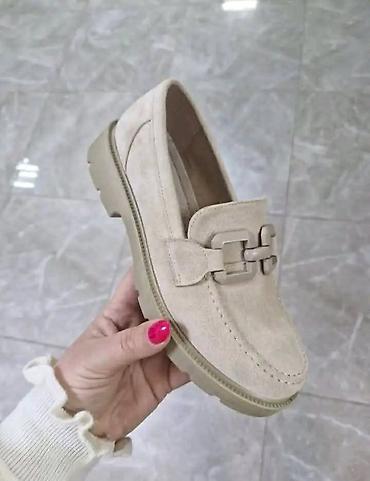 - Model: klasične mokasine sa blago podignutim, rebrastim đonom za stabilnost i udobnost pri hodu