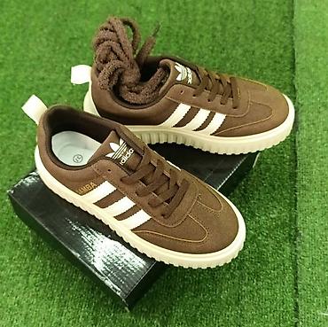 - Boja: tamno braon gornjište sa belim detaljima (tri pruge i đon)