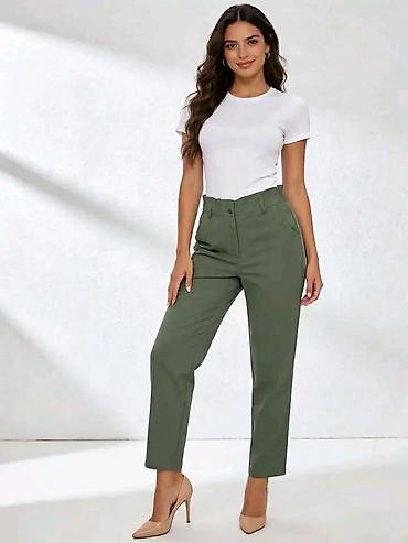 Ženske ravne pantalone sa visokim strukom - Kroj: pravo sečene