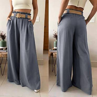 Ženske letnje pantalone širokih nogavica sa pojasom - Kroj: visok struk, široke nogavice (palazzo stil) za lagan, lepršav pad i maksimalnu udobnost. - Pojas: dekorativni tkan pojas u bež boji sa o...