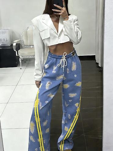Ženske široke trenerke sa printom „distressed denim“ - Model: široke