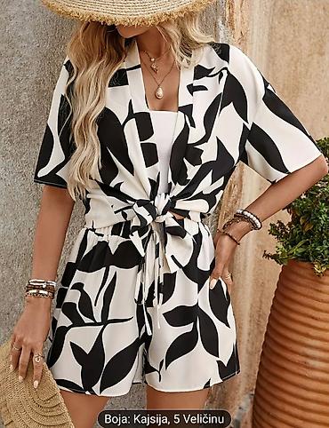 Napomena: beli kratki top sa naramenicama prikazan na fotografijama služi kao primer stilizovanja. Komplet čine kimono i šorts sa istim printom.
