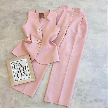 Komplet bez rukava elegantan sako prsluk + široke pantalone. Kroj