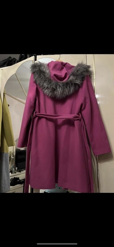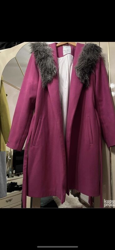 Ženski kaput u fuksija/ ciklama boji sa krznom