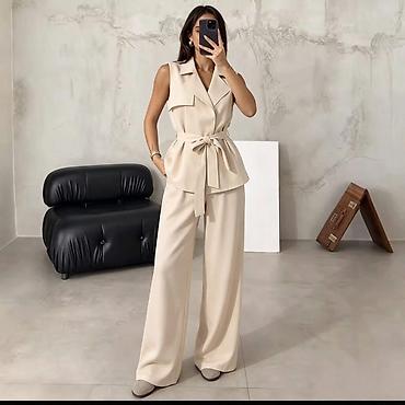 Ženski komplet bez rukava – prsluk i široke pantalone