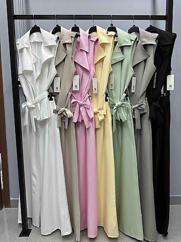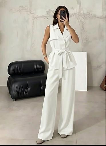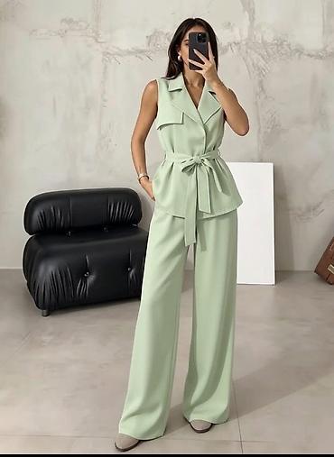 - Detalji dizajna: asimetričan donji rub prsluka, dužina pantalona do poda, diskretna struktura tkanine na tamnim varijantama