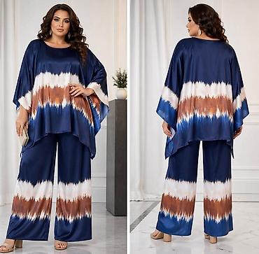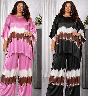 Ženski komplet – široka tunika i pantalone od satenskog materijala, plus size kroj.