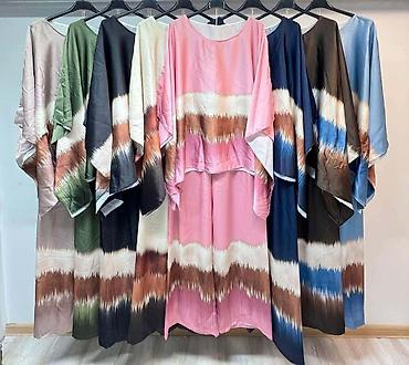 Ženski komplet – široka tunika i pantalone od satenskog materijala