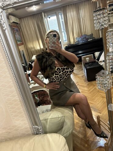 - Stil: elegantan detalj za večernje kombinacije, koktel/party izgled ili slojevit styling preko haljina, košulja i topova; lepo se uklapa sa neutralnim i animal print dezenima.