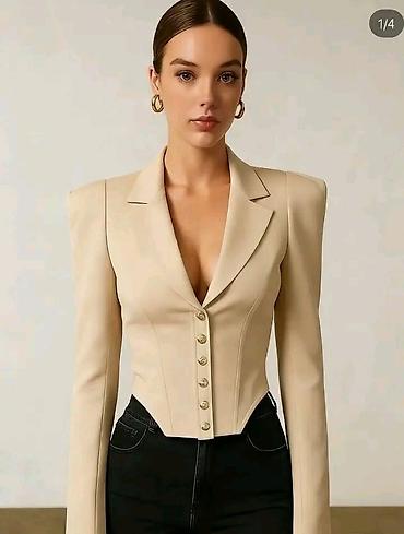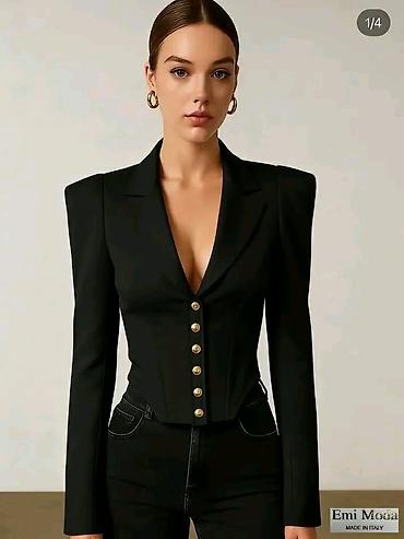 - Model: elegantan sako sa dubokim V izrezom i reverima, kroj naglašava struk u korsetskom stilu