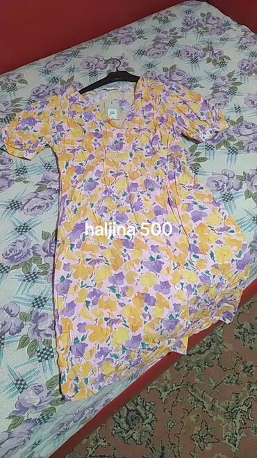 • Letnja cvetna haljina (na slici označena „haljina 500“): kratki rukavi sa blagim puff efektom, V-izrez, dugmad napred, lagana tkanina sa šarenim cvetnim printom (žuta, ljubičasta, zelena). Hemlajn do kolena/midi.