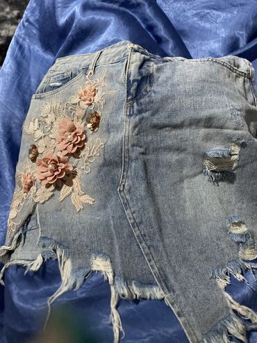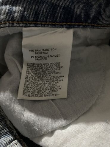 - Dizajn: svetli isprani džins sa izraženim „distressed“ detaljima i resama duž rubova.