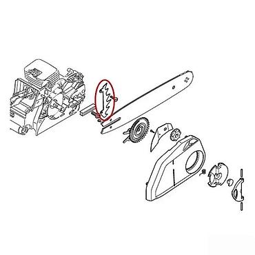 - Funkcija: Pomoćna zubasta papučica (felling spike, bucking spike) koja se montira sa bočne strane kućišta testere, uz vodilicu. Omogućava sigurno “usidravanje” u drvo, stabilniji rez i bolju kontrolu pri obaranju i presečanju.