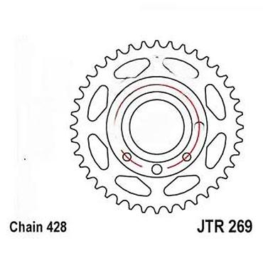 Zupčanik modela JTR 269, dizajniran za lanac tipa 428. Karakteriše ga