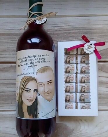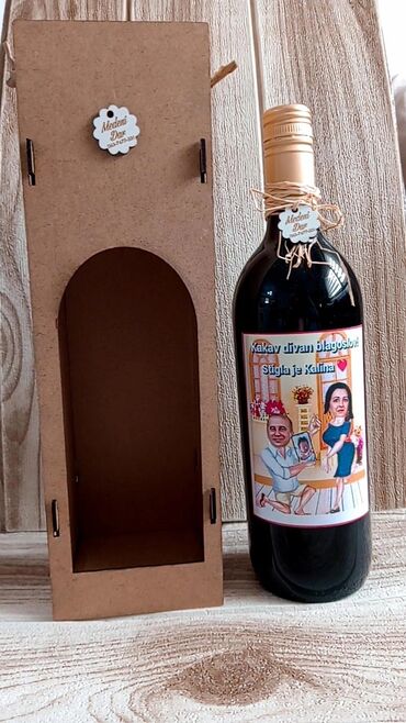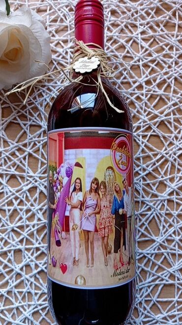 Boca vina sa prilagodljivom etiketom, idealna za personalizovane poklone ili posebne prilike. Etiketa se može dizajnirati sa fotografijama, tekstom ili grafikom po izboru. Vino je pažljivo odabrano da upotpuni estetski doživljaj prilagođenog pakovanja. Ovaj proizvod je savršen izbor za rođendane, godišnjice, proslave ili kao jedinstven korporativni poklon. Mogućnost dodavanja personalizovanih čokoladica u kompletu, koje takođe mogu imati prilagođene omote.