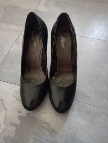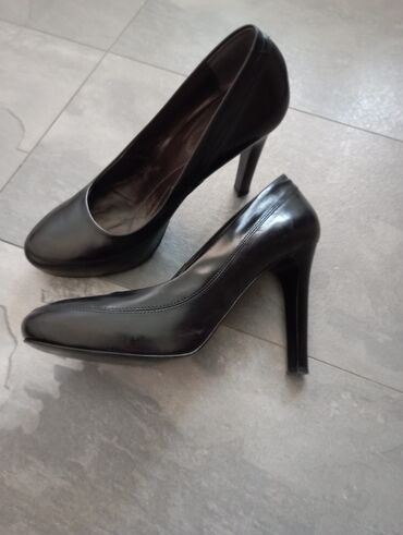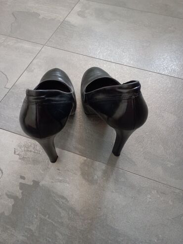 Crne ženske salonke na štiklu - Brend: Autilop (oznaka na đonu) - Veličina: 37 - Materijal: koža ili koži sličan materijal - Boja: crna - Dizajn: zaobljeni vrh, dekorativna mašnica napred i blago ...