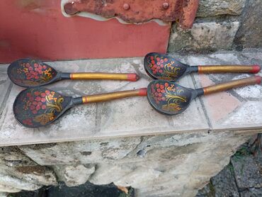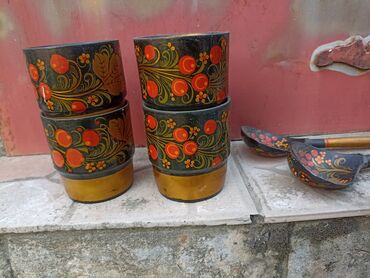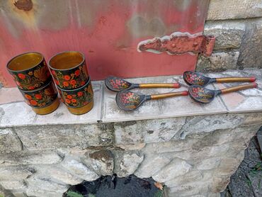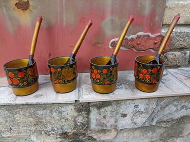 Drvene čaše sa kašika a sa slike ,ukras iz Rusije ,ukrasni dekor, cena je za komplet od četri čaše sa kašikama.
