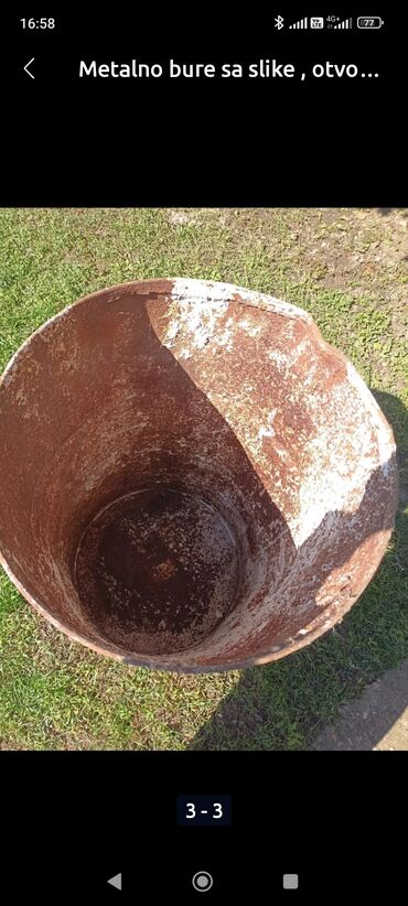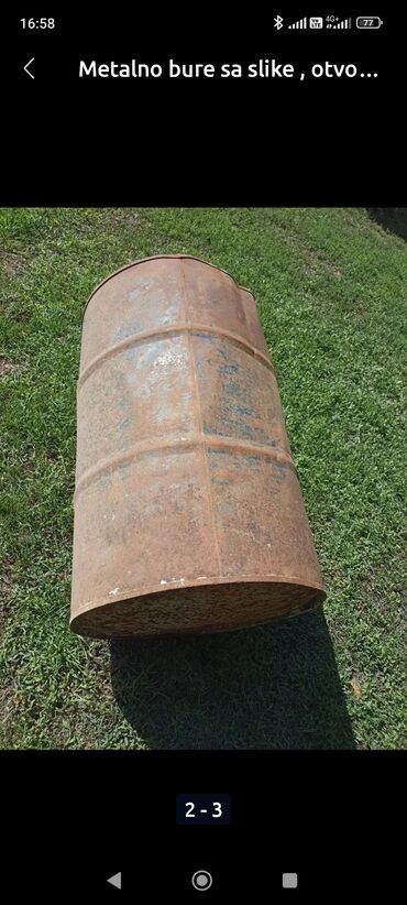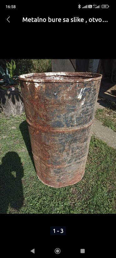 Dva bureta,jedno metalno (otvoreno)-200 litara,drugo plastično sa slavinom na dnu, cena je za oba.