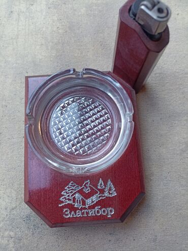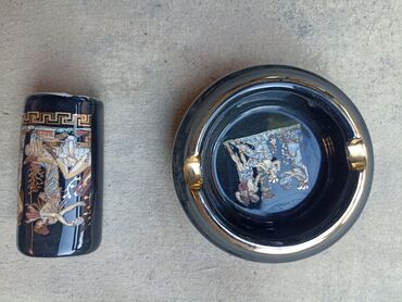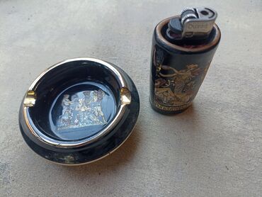 PepeljaraDva kompleta (pribora )sa slike , nekorišćeno ,jedan komplet keramički ,drugi drveni sa staklom,motivi kao na slici, cena je za oba kompleta.