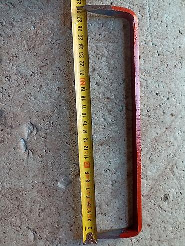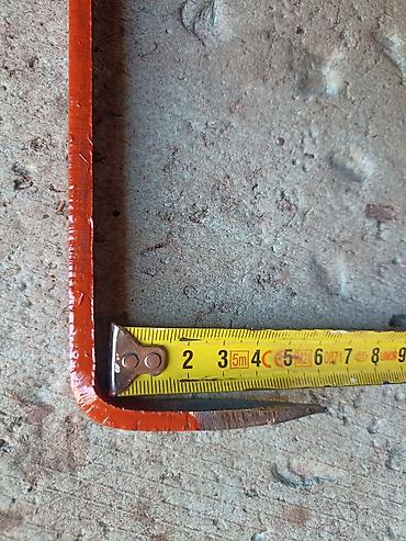 Klanfe za drvene grede sa slike, napravljene od četvrtki 6 mm x10(12) mm, klanfe su dužine do 280 mm,klin koji se kuca u gredu dužine 60 mm, obojene osnovnom bojom, na stanju 28 komada, cena je za sve.