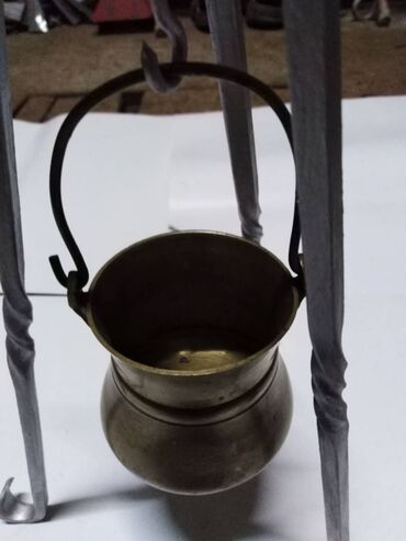 Kotlić ukras-suvenir,kotlić mesingani prečnika 8 cm,nogare kovano gvoždje /vidi sliku/, visine 30 cm, ofarbano osnovno potom bronza bojom,šaljem brzom poštom.