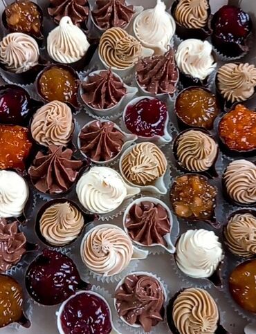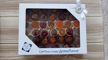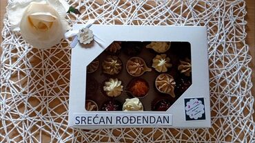 Domaći kolači i slani zalogaji – pakovanja za proslave i posluženja. Slatki program: - Sitni kolači u raznim vrstama i oblicima: čokoladne kocke sa glazurom, štangle sa svetlom i tamnom čokoladom,...