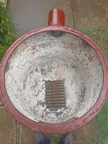 UpotrebljenоLožište (od limenog bureta) za kazan, dubina ložišta 430 mm, unutrašnji prečnik 505 mm,prsten (ojačanje) odozgo debljine 5 mm širine 30 mm, visina ložišta sa nogica a 920 mm,rešetka debljine 10 mm ,cev za čunak debljine 4 mm ,uz ložište ide čunak sa krivom preuzimanje lično.