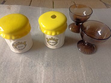 O trošku kupcaPosude sa slike za kuhinju ,dve staklene sa postoljem za puding,sladoled i slično ,i dve od keramike namenske, cena je za sve .