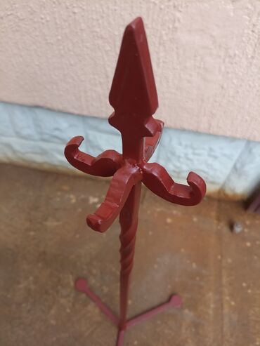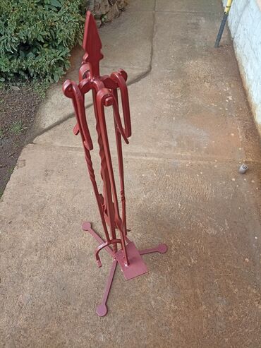 O trošku kupcaPribor za kamin-roštilj sa slike ,kovani,stalak visine 85 cm ,sa četiri elementa dužine 64 cm , obojeno osnovnom bojom .
